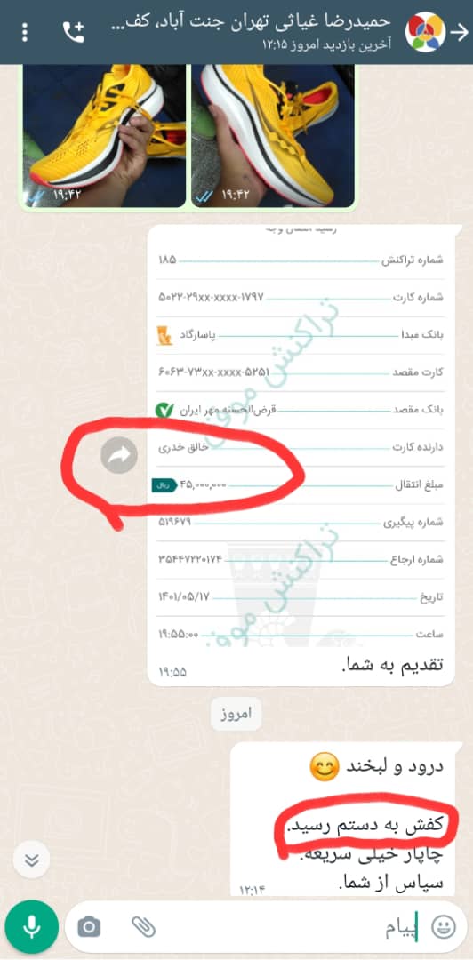 درود و لبخند 😊 کفش به دستم رسید. چاپار خیلی سریعه. سپاس از شما.