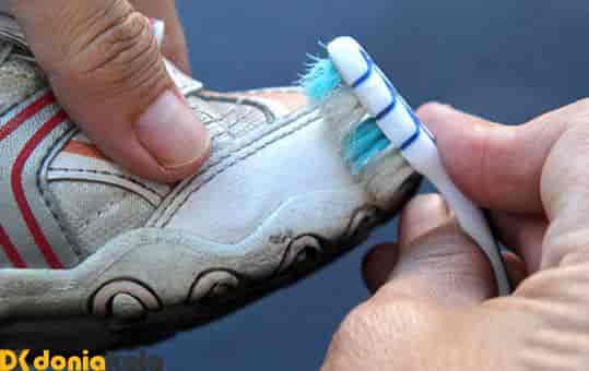 4 - تمیز کردن بغل و زیر کفش با استفاده از خمیر دندان