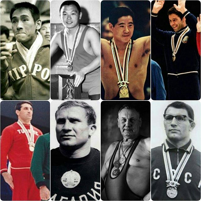 الکساندر مدوید ( شوروی ) برنده مدال طلا در المپیک های 1964 – 1968 – 1972 و قهرمان دنیا در سالهای 1962 – 1963 – 1967 – 1969 – 1970 و 1971. افتخارات و پیروزمندیهای او در تاریخ کشتی جهان بی نظیر است .