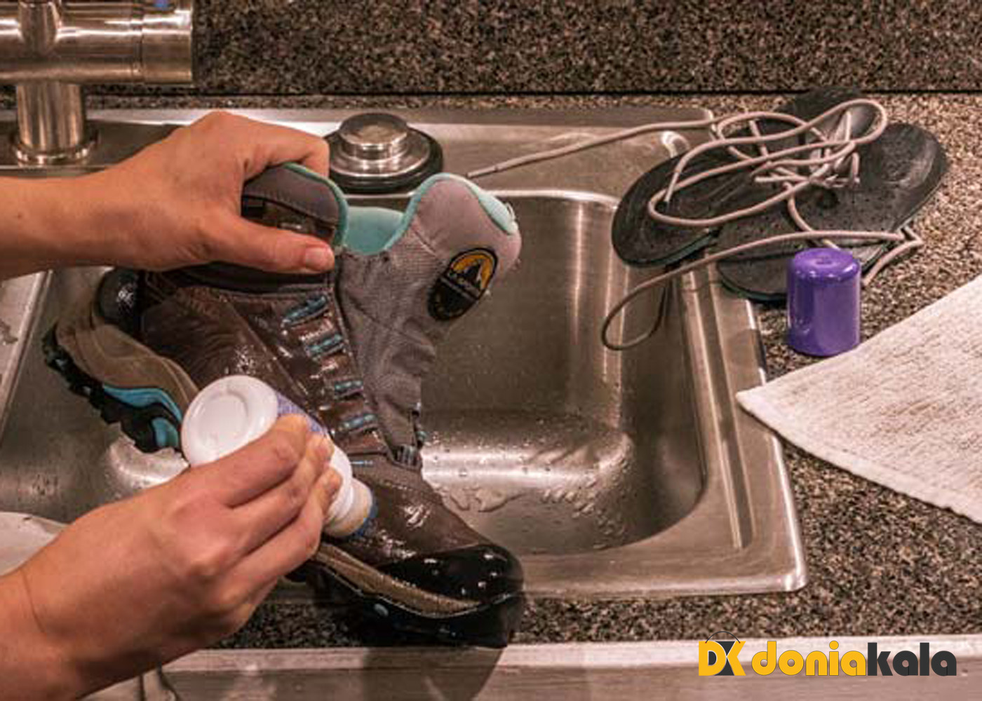 اسپری ضد آب: اسپری ضد آب محبوب ترین گزینه برای ضد آب کردن چکمه های پیاده روی شما است. سریع، آسان و نسبتاً ارزان است. حتما قبل از استفاده از اسپری، کفش خود را کاملا خشک کنید. بطری را به خوبی تکان دهید وآن را روی کفش بزنید. بهترین اسپری ها بی بو خواهند بود، ظاهر کفشتان را بهتر می کنند و باعث تغییر رنگ نمی شوند.
