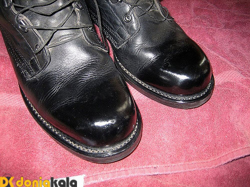 6. تکرار کنید تا کفش مانند یک آینه براق شود. مرحله 5 را تکرار کنید تا از میزان درخشش راضی شوید. به یاد داشته باشید که هر بار از یک تکه پنبه جدید استفاده کنید و قبل از استفاده از روکش جدید، تمام پولیش اضافی آن را از بین ببرید. درخشش اولیه سخت ترین مرحله کار است، باید هر بار انجام این کار کمی آسان تر شود. این چکمه ها نسبتاً جدید بودند و این اولین بار است که درخشش خوبی به آنها می بخشم. از آغاز تا پایان، تقریباً 45 دقیقه زمان برد تا آنها را به حالت زیر در بیاوریم. بیشتر این کار با پد های پنبه ای صورت گرفته بود که قسمت انگشتان پا و پاشنه پا را برق می انداخت. اگر قرار باشد چند هفته دیگر دوباره این کار را انجام بدهم، آنموقع تقریبا نیمی از زمانی که الان صرف کردم، نیاز است.