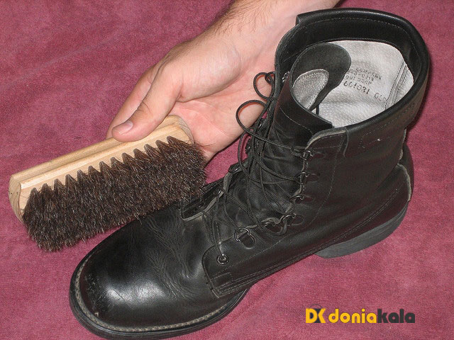 2. کفشهای خود را تمیز کنید و با قلم موی اسب یا پارچه مرطوب، گرد و غبار را از روی چکمه های خود تمیز کنید. برای تمیز کردن آنها باید چکمه های خود را کمی مرطوب کنید، قبل از استفاده از پولیش اجازه دهید خشک شود.