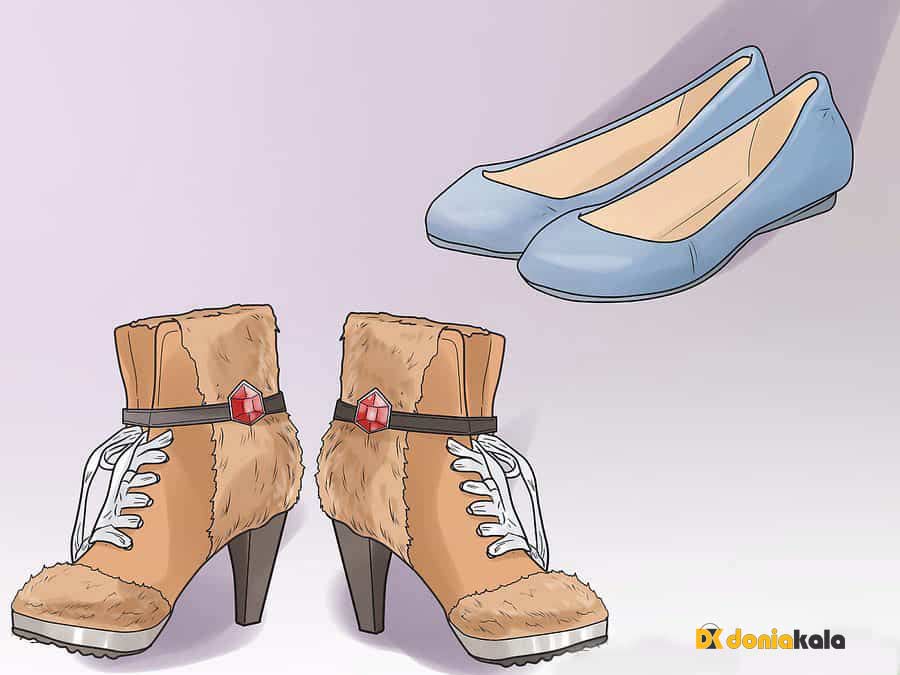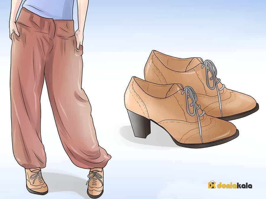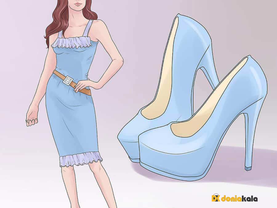 1. در انتخاب رنگ کفش، رنگی را انتخاب کنید که با لباس هایتان مطابقت داشته باشند تا رنگی که با لباسهایتان در تعارض باشد. وقتی لباسی با طرح روشن و جسور پوشیده اید، کفش پاشنه بلند یا تخت ساده به پا کنی. اگر قرار باشد کفش پیچیده تری بپوشید، به نظر خیلی ها بیش از حد خسته کننده به نظر می رسد. بدیهی است که می توانید هر کفش را که دوست دارید بپوشید، هیچ کد لباس پوشیدنی برای رعایت کردن یا برای مسائل بهداشتی و ایمنی در نظر گرفته نشده است. کفش پاشنه بلند یا متوسط و یا تخت را در نظر بگیرید اگر در یک شب پر زرق و برق باشید.