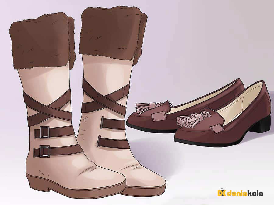 19. چکمه های برفی را هنگام برف و چکمه های بارانی را هنگام باران بپوشید. وقتی در داخل خانه راحت هستید چکمه های مد روز خود را عوض کنید.