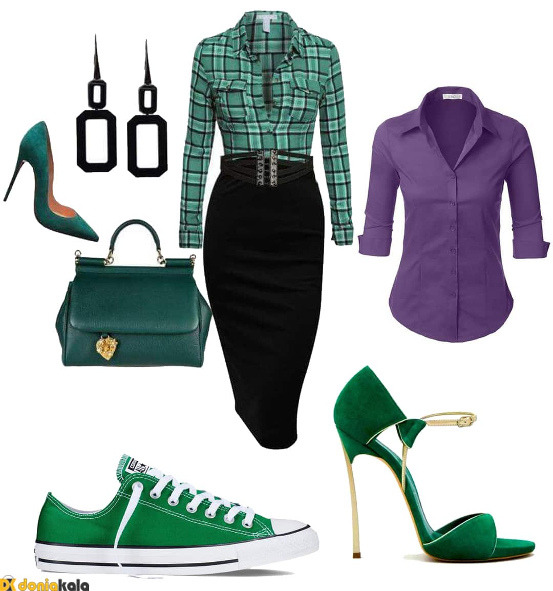 کفش سبز را می توانید با شلوار مشکی به عنوان بخشی از استایل خیابانی و راحتی خود بپوشید. اگر از کفش مجلسی سبز استفاده می کنید رنگ های نزدیک به آن مثل طیف های مختلف سبز، زرد و یا طیف های متضاد آن مثل نارنجی یا بنفش استفاده کنید.