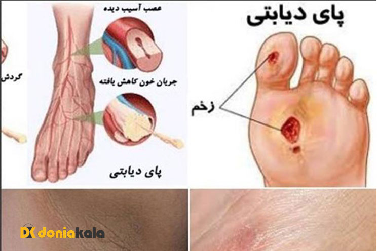 در بیماران دیابتی آسیب عروقی در اندام ها باعث كاهش و نارسایی جریان خون اندام بخصوص در ساق پا و انگشتان می شود . همچنین آسیب به اعصاب باعث درد و احساس ناراحتی ، بی حسی و گز گز و مور مور و در نهایت از بین رفتن حس پاها می شود. این آسیب عروقی و عصبی می تواند همزمان یا جدا از هم ایجاد شود. كه نتیجه آن بروز زخم هایی است كه به دنبال صدمات مختلف به پاها ایجاد می شود كه درد ندارد و به راحتی عفونی شده و به راحتی ترمیم نمی شوند. در موارد شدید و یا آسیب عروقی ممكن است شدت آسیب بافتی به حدی باشد كه ایجاد قانقاریا كند و منجر به قطع بخش یا تمام عضو شود.