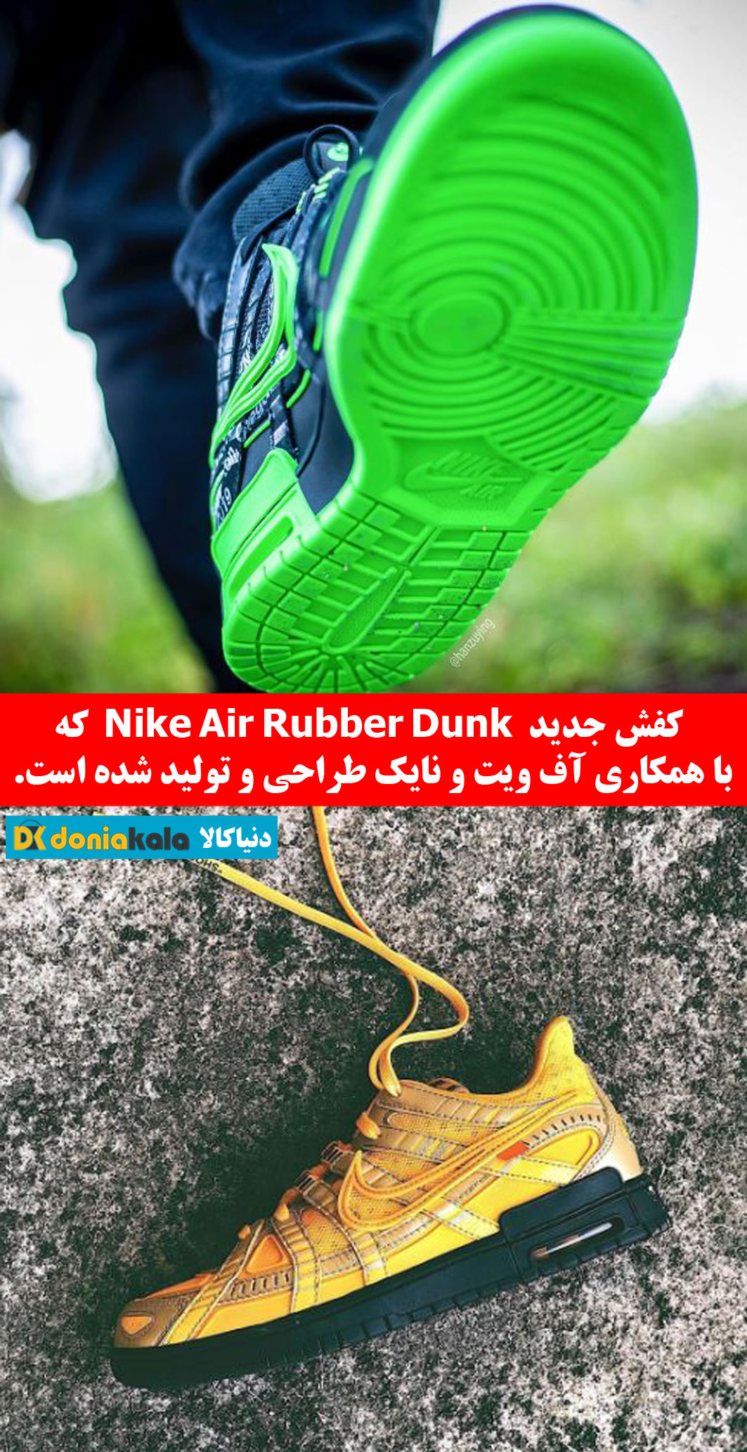 کفش جدید نایک آیر رابر دانک Off-White x Nike Rubber Dunk Black که با همکاری آف ویت و نایک طراحی و تولید شده است.