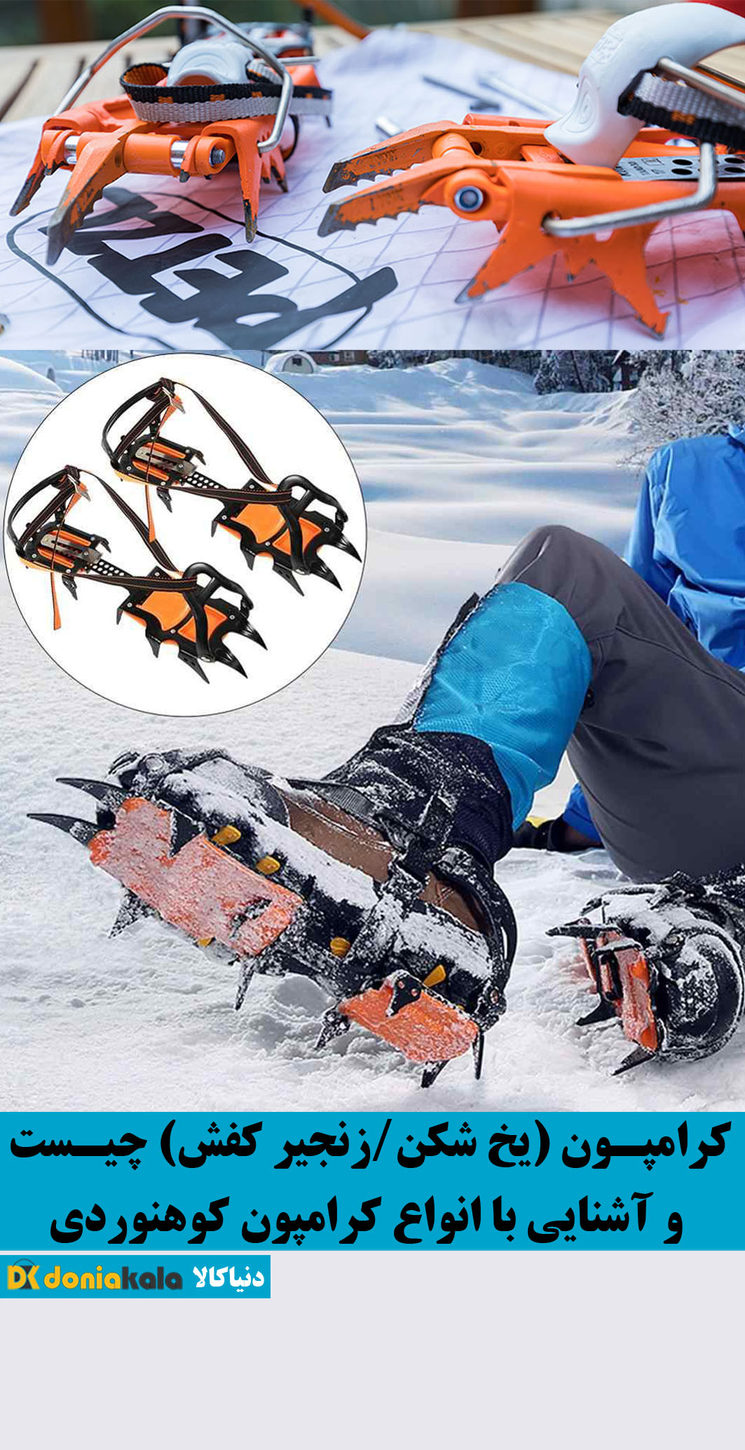 کرامپون (یخ شکن / زنجیر کفش) چیست؟ آشنایی با انواع کرامپون کوهنوردی و کاربرد آن ها