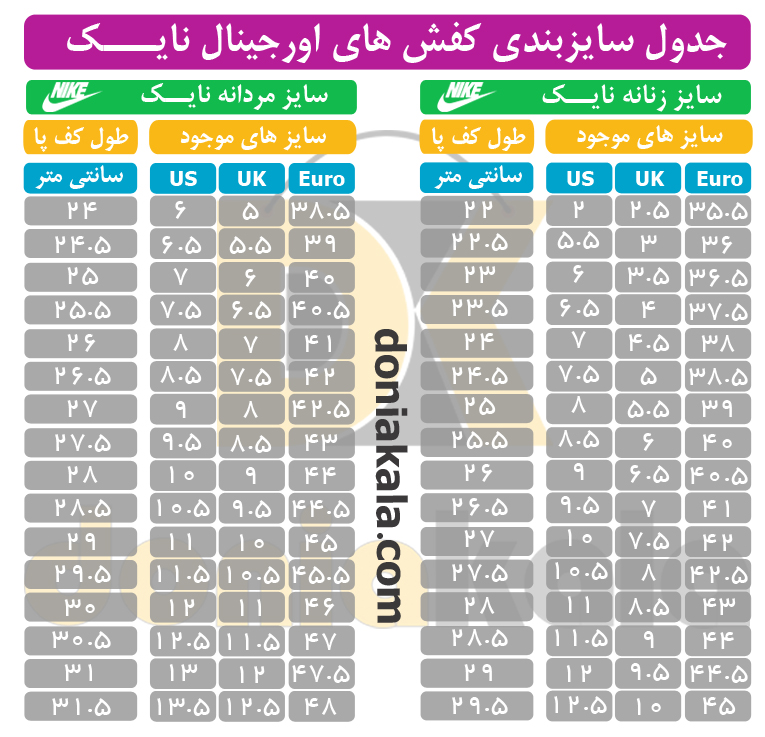 راهنما و نحوه اندازه گیری سایز پا برای کفش ورزشی، اسپورت و کتانی های اورجینال نایک nike آمریکا