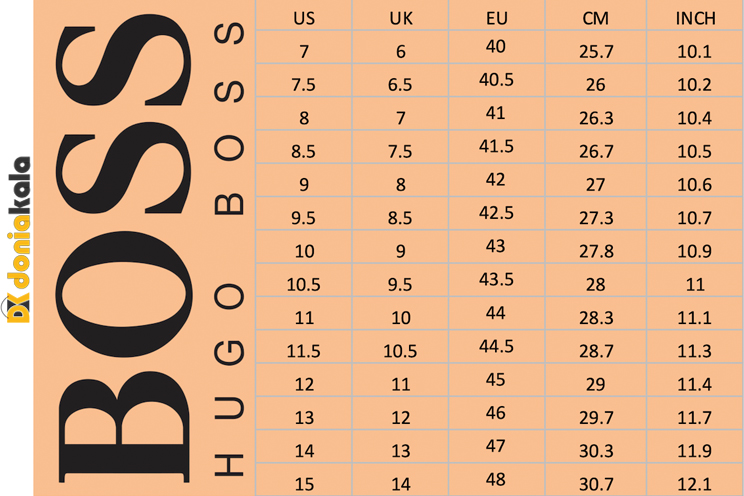جدول سایزبندی کفش اورجینال چرمی هوگو باس Hugo boss زنانه و مردانه: