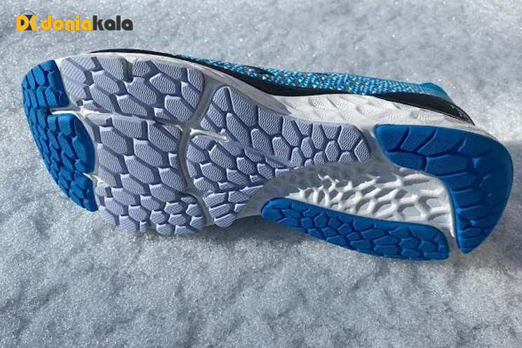 زیره همسطح همچنین سطح بالایی را برای لایه ای از لاستیک بادوام به کفش می دهد. زیره به کاهش ضربه کمک می کند و همچنین کشش عالی را در جاده ها و پیاده روها ایجاد می کند. هایپوکنیت Hypoknit رویهای انعطافپذیر و راحت ایجاد میکند که به هیچوجه جمع نمیشود و نمیچرخد.