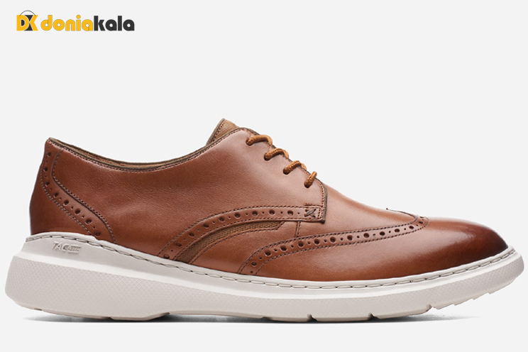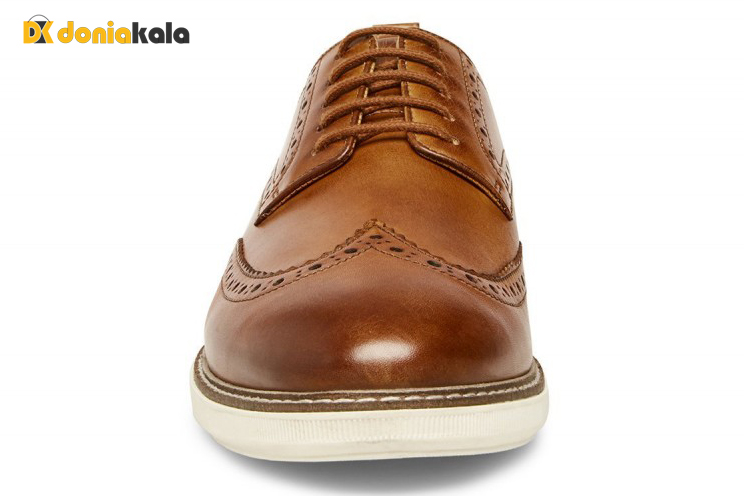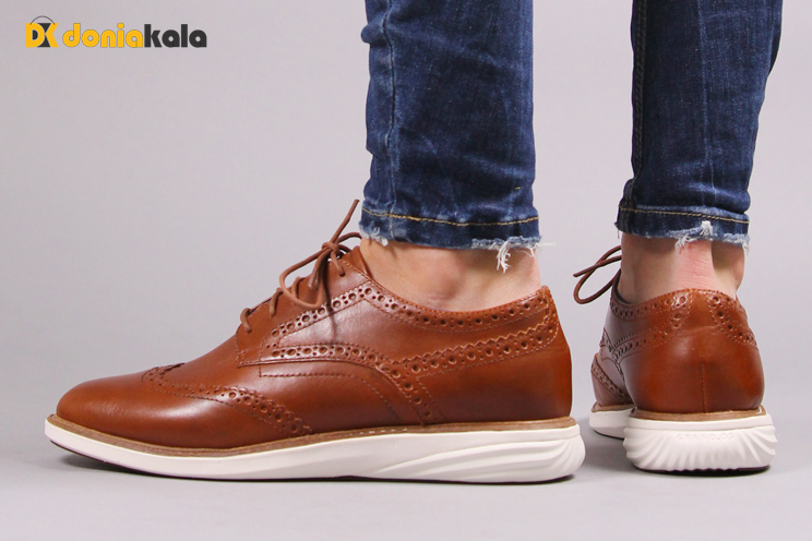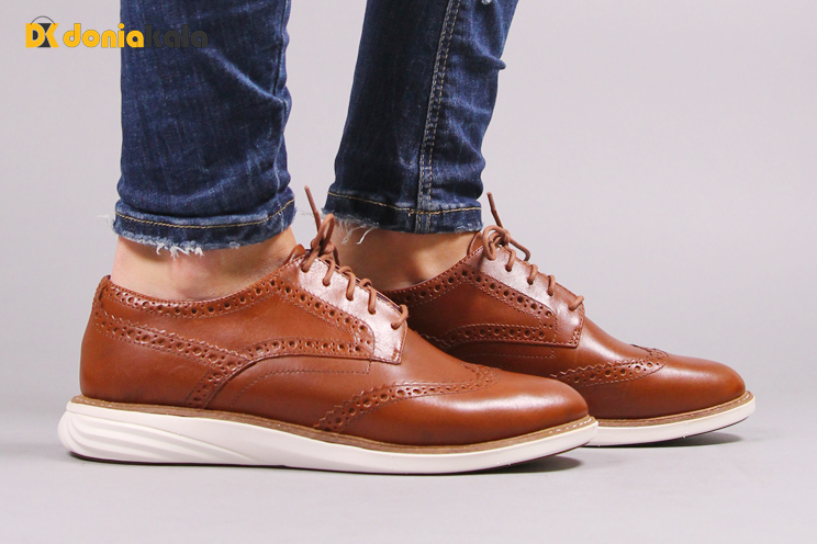 کفش چرمی مجلسی پسرانه کول هان چرم قهوه ای تیره COLE HAAN Dark Tan Leather یک کفش کلاسیک آکسفورد، Dennet Wing، تجربه راحتی طبیعی و منحصر به فرد را در زیر پا ارائه می دهد. فناوری Targeted Anatomic Comfort ما یک کفی فوم بالشتکی با چگالی دوگانه، آخرین آناتومیک و یک زیره EVA کانتور سفارشی را ترکیب میکند تا حرکت کاملاً بدون دردسر را امکانپذیر کند. پشتیبانی از پاشنه و قوس و ساختار انعطاف پذیر Strobel پوشیدن آسان و احساس خوبی را افزایش می دهد. تیم رویه چرم خرمایی تیره با مسئولیتپذیری با زیرههای اسپرت ظریف برای ارائه استایلی زیبا و ورزشی.