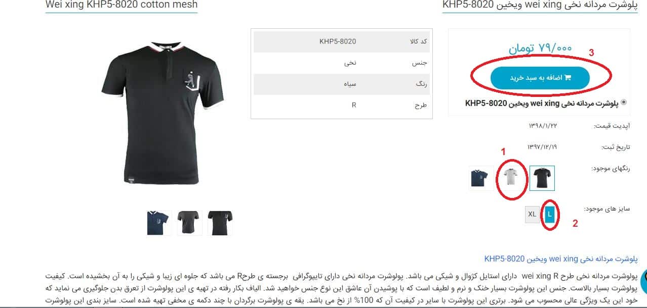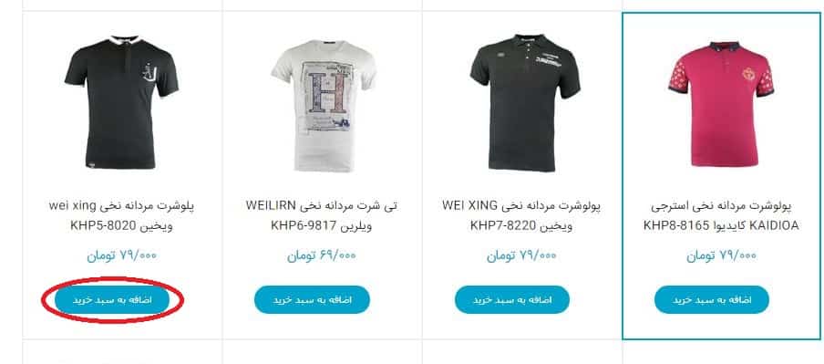 3 - حالا ما یک محصول را انتخاب میکنیم و وارد صفحه آن محصول میشویم . ( مثلا تیشرت مردانه )
