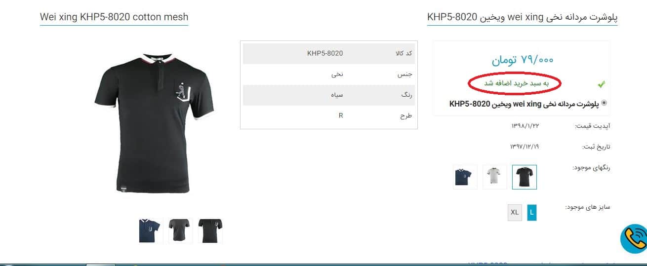 با یک بار کلیک کردن رنگ گزینه اضافه به سبد خرید به سبز تغییر خواهد کرد و جمله به سبد خرید اضافه شد نمایان میشود. . برای ادامه روی آن کلیک کنید.