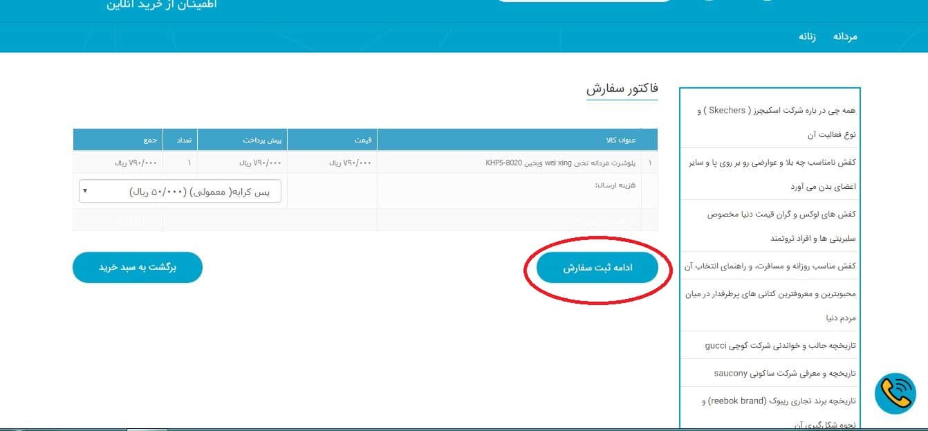 در آخر بر روی ثبت سفارش کلیک کنید