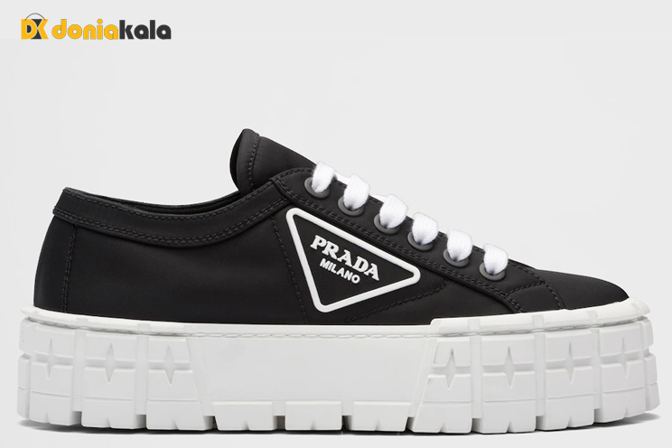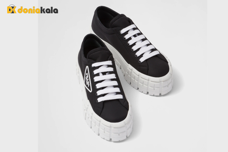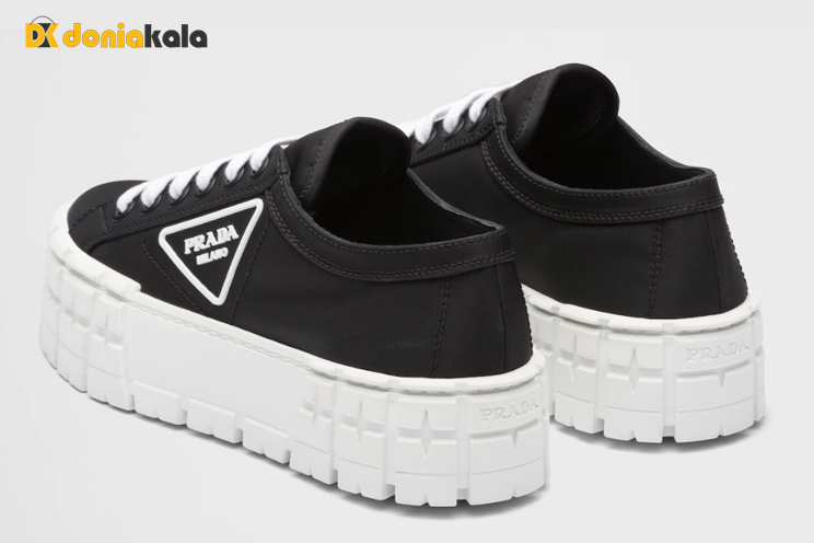 کفش چرم اسپرت طبی، پیاده روی اورجینال پرادا دابل ویل Prada Double wheel 1E260M | توضیحاتی درباره ی محصول : طراحی خلاقانه با جذابیت یکپارچه سازی با سیستمعامل این کفشهای کتانی دو چرخ را مشخص میکند. کف جامد و بافت دار با رویه کلاسیک گاباردین ترکیب شده است که با آرم ترین گولو Triangolo لاستیکی مزین شده است. آرم پرادا مثلثی لاستیکی برجسته ـ زیره لاستیکی با ضخامت 50 میلی متر ـ کفی قابل جابجایی با.