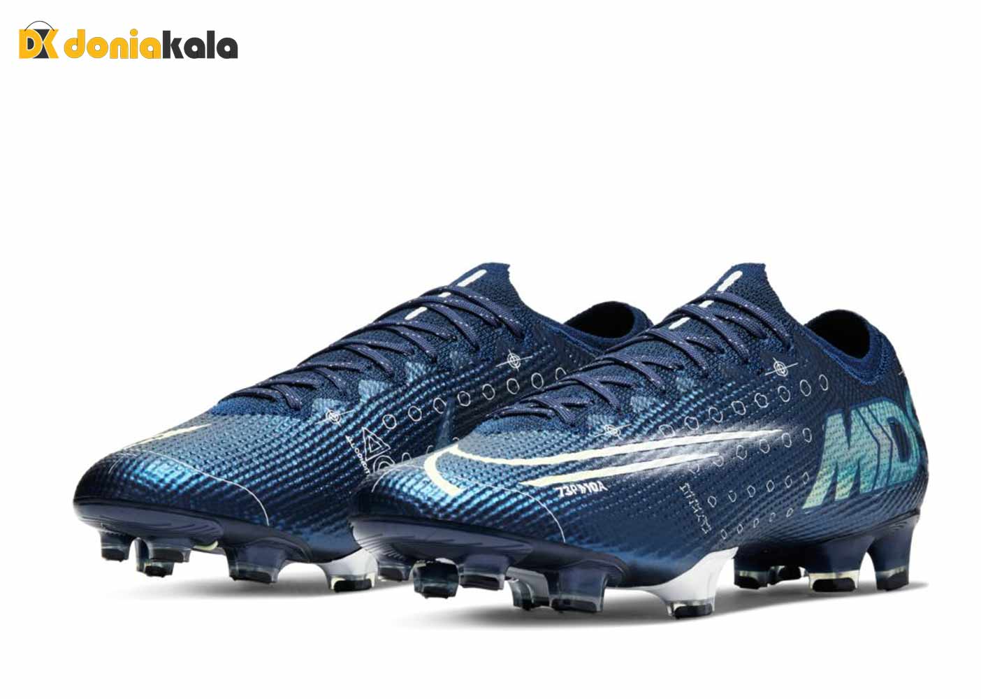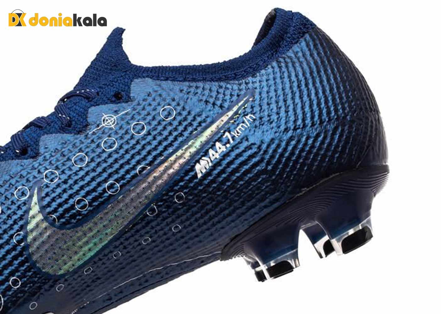کفش فوتبال چمن طبیعی مردانه نایک ویپور مخصوص بازیکن های حرفه ای از جمله کریستیانو رونالدو در سال 2020 می باشد. ساختار 360 درجه فلایکنیت Flyknit پای شما را می پوشاند تا از جنس پوست دیگری باشد. نخ های کم تحرک جدید و یک تکه تکه احساس نزدیکی و ایمنی را در این زمینه ایجاد می کنند. یک پوشش جدید بسیار نازک نایک اسکین NIKESKIN شما را برای مانورهای پر سرعت به توپ نزدیک تر می کند. همه فناوری کنترل شرایط (ACC) را دارد که به معنای لمس قابل اعتماد در شرایط مرطوب و خشک است. دارای سیستم نایک گریپ NikeGrip می باشد که از پا پشتیبانی می کند. NikeGrip راحتی و کوسن مناسب را ایجاد می کند، مانع از سر خوردن پا در داخل کفش می شود، ضمن اینکه حداقل لغزش را نیز به حداقل می رساند.