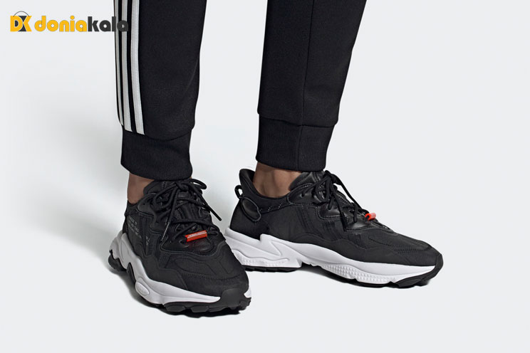 کفش و کتونی اسپرت مردانه آدیداس مدل اوزیگو کفشی زیبا با رنگ مشکی و طراحی شده برای ورزشگاران حرفه ای و کسانی که به پیاده رویی های طولانی مدت و دویدن علاقمند هستند. رویه این کتونی از روپ استاپ و رویه چرمی ساخته شده است که با یک لایه ی جیر روکش شده است. با تکنولوژی بالشتک موثر به شما آزادی کامل وحرکت می دهد و با افزایش بار، ماده کف سه بعدی به صورت صرفه جویی انرژی را به طور موثر جذب می کند و احساس سبکی می بخشد، در حالی که عناصر متحرک مستقل حرکت مطمئن را از همه جهت تضمین می کنند. این کتونی مناسب پیاده روی های روزمره و پیاده روی های شهری می باشد. کلاسیک دهه 90 زمینه های جدیدی پیدا می کند. این کفش های آدیداس نوآورانه را به عنوان یک استاد دنباله دار ناهموار با رویه ایستاده براق و زیره الهام گرفته از دنباله بازسازی می کنند. خطوط مواج و جزئیات طناب در اطراف پاشنه، نمای متمایز را کامل می کند.