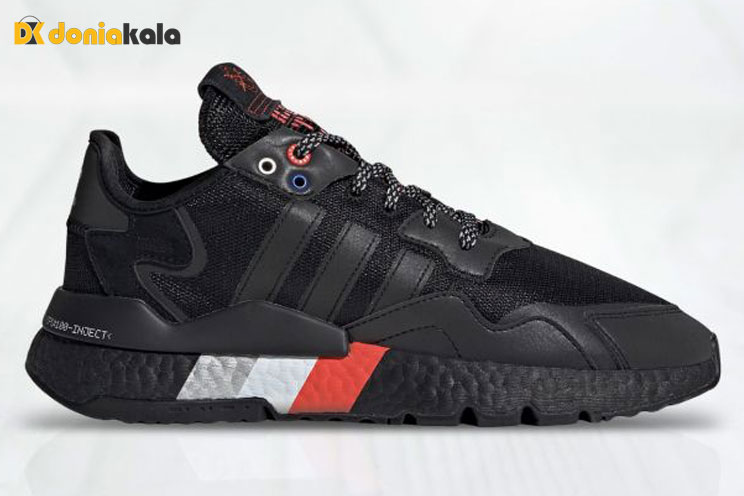کفش و کتونی مردانه آدیداس نیت جوگر دارای کفی نساجی و کوسن و قابل ارتجاع و جابجایی است. مهمترین چیز برای خرید یک کفش اصلی این است که در طولانی مدت مشکلی نداشته باشد و راحت باشد که این کفش دقیقا همان چیزی است که شما می خواهید. این کتونی واقعا برای پیاده روی های طولانی مدت بسیار مناسب است. این کتونی دارای EVA با طول کامل و دارای لایه ای از Everun در بالای استروب برای کنار کوسن و پاسخگویی پا است. کف این کتونی از جنس EVA می باشد که امکان قابل جابجایی آسان را به کفش می دهد و همچنین باعث ضعیف شدن فشار وارده از طرف زمین به کفش می شود و مانع کمر درد و پا درد می شود و دارای سیستم پاشنه گرید برای کوسن پاسخگو و بادوام و مانگاری است. مواد بیرونی این کتونی از لاستیک کربن XT-600 del است مقاومت بالایی در برابر سایش و کشش کفش دارد. بافت رویه کفش ظاهری سبک به این مدل می بخشد . رویه ی آن از چرم طبیعی جیر و پارچه ساخته شده است. پوشش داخلی از پارچه ساخته شده است. زیره راحت این مدل از پلاستیک ساخته شده است. فناوری EVA ، کفی متحرک ، Xt-600 یک مزیت بزرگ این مدل است.