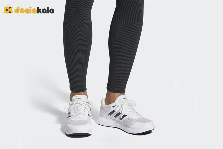 کتونی اسپرت و روزمره مردانه آدیداس دورامو شیک و جذاب برای تمام سنین. جنس رویه بالایی آن از پارچه مش فوق العاده می باشد و طوری طراحی شده که اجازه تنفس به داخل کفش داده شده است. زیره آن از لاستیک و ای وی ای EVA و اسفنج هایی در آن کار شده برای حمایت از پا و کسایی که کمر درد دارند. پاشنه آن از تکنولوژی Fitcounter استفاده شده و همانند یک فنر عمل میکند. زیره کفش ازلاستیکهای چنگال Stretchweb به طور طبیعی منعطف هستند در حالی که لاستیک قاره باعث کشش برتر می شود.