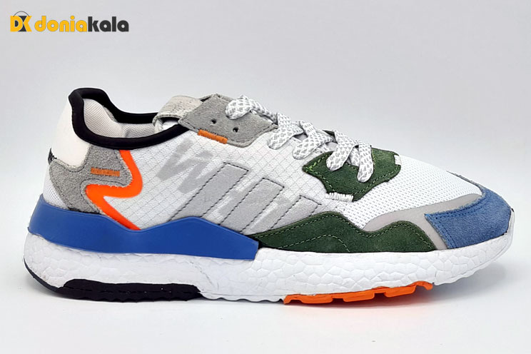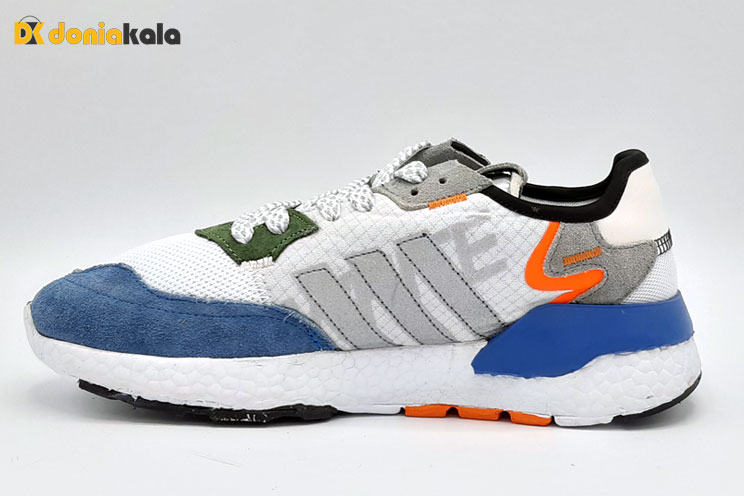 این کتونی در یک طرح هفت رنگ، ابر سفید و هسته اصلی آبی طراحی شده است. این کتونی دارای یک لایه بالا در ترکیبی از مش، جیر است. یک پلاگین میانی قطعه ای شعله ای در بالای میانه چوبی White Boost و روکش بیرونی لاستیک چند رنگ طراحی را تکمیل می کند. با تکنولوژی بالشتک موثر به شما آزادی کامل در حرکت می دهد و با افزایش بار، ماده کف سه بعدی به صورت صرفه جویی انرژی را به طور موثر جذب می کند و احساس سبکی می بخشد، در حالی که عناصر متحرک مستقل حرکت مطمئن را از همه جهت تضمین می کنند. این کتونی مناسب پیاده روی های روزمره و پیاده روی های شهری می باشد و رویه ی آن از جنش مش و الیاف مصنوعی می باشد که انعطاف پذیر و قابل تنفس که از بوگرفتگی و عرق کردن پا جلوگیری میکند.