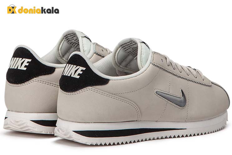 کفش کلاسیک نایک اورجینال پیاده روی و اسپرت مدل کورتز بیسیک NIKE CORTEZ BASIC JEWEL AA2145-008 کتونی اسپرت و پیاده روی مردانه بسیار شیک و زیبا قابل ست با انواع مدل و طرح لباس. این کفش های چرمی زنانه خطوط تمیز و راحتی را ارائه می دهند. جزئیات دوختی شیک و برشها روی بندها و آرم کناری باعث ایجاد لکه هایی در قسمت بالایی تک رنگ می شود. رویه این کتونی اورجینال تمام چرم می باشد که از کیفیت و استحکام بالایی در برابر شرایط آب و هوایی برخوردار است و پا را به طور کامل محافظت میکند. طراحی شده برای سبک خیابان و دورهمی های دوستانه و پیاده روی دارای کفی کاملا نرم و راحت و زیره ای از جنس لاستیک و ای وی ای EVA که حالت ارتجاعی دارد و راه رفتن و پیاده روی های طولانی را راحت کرده و از فشارهای وارده کاملا جلوگیری میکند. روکش بیرونی زیره کفش از لاستیک درجه یک می باشد برای دوام بیشتر به کار رفته است.