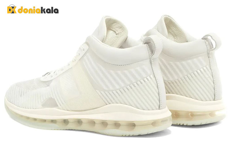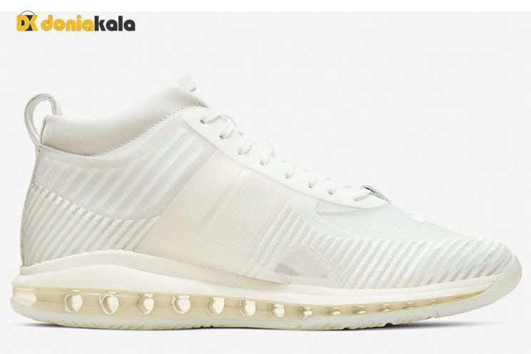 صفحات و سبک های رنگی بی حد و حصر نایک لبرون با سرعت زیادی در ماه های زمستان در حال گسترش است. اکنون، جدیدترین آرایش و ظاهر تازه این کتونی با یک روش کاملاً جدید برای تزئین، همه چیز را بالا می برد. بارزترین ویژگی طراحی کفش بدون شک پوسته فوقانی مصنوعی است که به جای طرح لایه ای استاندارد قرار می گیرد و ظاهری تقریباً Foamposite دارد. جدای از یک ظاهر جالب و متناسب، این طراحی جدید Max همچنین دارای یک براقیت منحصر به فرد به رنگ سفید است که بسته به زاویه دید تغییر رنگ می دهد. بقیه کفش بسیار ساده تر نگه داشته می شود تا بیشترین توجه را به فرماندهی بالایی داشته باشد. رویه این کتونی از نساجی سبک و فوق العاده قوی Battleknit ساخته شده است که بسیار مقاوم است.و زیره ی این کتونی از EVA و لاستیک می باشد که اصطکاک ره به حداقل می رساند و مانع از فشار های وارده از زمین به پا می شود که با الگوی اصلاح شده استخوان شاه ماهی درست شده است و دارای بالشتک سازی Air Max می باشد.