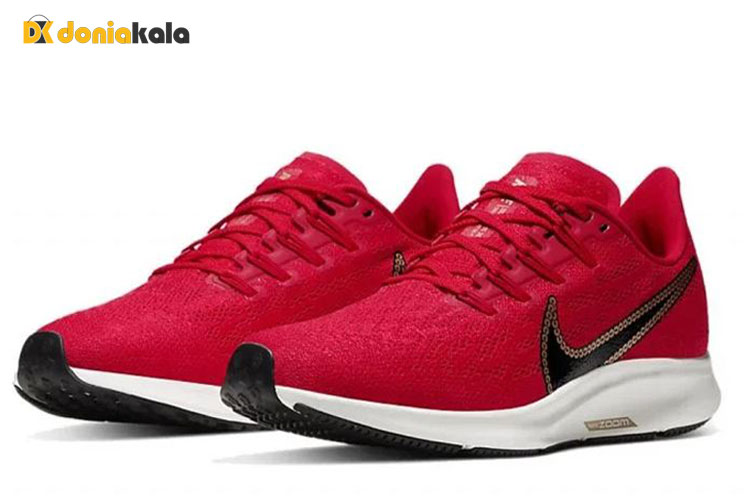 کتونی اورجینال مخصوص پیاده روی و دویدن زنانه نایک آیر زوم پگاسوس 36 چسبنده ای با واکنش بالا و چسبندگی بادوام به بسیاری از سطوح پایین آج ارائه می دهند. مواد مش خاص پشتیبانی را در نقاط مناسب و گردش هوا فراهم می کند.این کتونی خیلی شیک و زیبا و قابل ست کردن با انواع لباس های اسپرت در رنگ های مختلف است. این کتونی مخصوص رانینگ (دویدن) می باشد. زیره ی لاستیکی و EVA و کف ارتجاعی آن باعث راحتی در راه رفتن شده است و بسیار مقاوم در برابر سایدگی می باشد. از دیگر ویژگی زیره کفش کاهش فشار وارده از طرف زمین به پا و جلوگیری از کمر درد می باشد. رویه این کتونی از الیاف مصنوعی و پارچه مش تشکیل شده و حالت توری مانندی دارد که هوا به داخل کفش نفوذ میکند و مانع از بوگرفتگی پا و هم چنین از عرق کردن پا جلوگیری می کند. این نوع کتونی زیر نظر شرکت نایک آمریکا در کشور چین تولید می شود و به اروپا عرضه می شود.