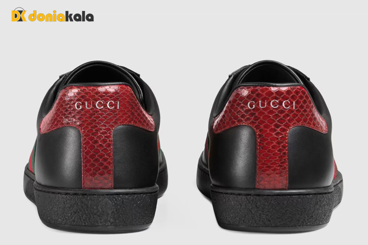 کفش چرم گوچی ایس اورجینال | خیابانی | پیاده روی | اسپرت| Gucci Ace 386750 02JR0 1078 | کفش کتانی Ace دارای تارنمای نمادین خانه به رنگ سبز و قرمز است. جزئیات چرم متضاد روی پاشنه طراحی را کامل می کند. چرم مشکی با جزئیات چرمی قرمز روی پاشنه ـ کفش لاستیکی ـ این کفش ها بزرگ هستند. توصیه می کنیم نیم سایز کوچکتر داشته باشید.کتانی کوتاه آس با ترکیب رنگ سبز و قرمز توسط House Web مشخص می شود. این سبک با جزئیات چرم متضاد در پشت تکمیل می شود. این کفشهای کتانی گوچی به شکل همه کاره تاپ پایین و پنجه گرد هستند. آنها دارای رویه چرمی صاف مشکی هستند که با درج های سبز و قرمز رنگ در طرفین تزئین شده است، که یک ویژگی فوراً قابل تشخیص در مارک ها است. در قسمت پاشنه یک قسمت چرمی قرمز با بافت مار با حروف برجسته گوچی قرار دارد. با یک بند بند منطبق و یک زیره لاستیکی مشکی مسطح با آج به زیره بند تکمیل شده است. دارای چرم داخلی با برند گوچی.