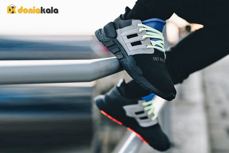 کفشهای آدیداس تجهیزات ماجراجویی آنها در سال 1991 آغاز شد. هدف اصلی آنها دویدن بود، بنابراین طراحان آلمانی بر طراحی پیشرفتهترین کفشها از نظر فناوری که در بازار نیز موجود خواهد بود، تمرکز کردند. طراحان سه بند در سری پشتیبانی از مدرن ترین راه حل ها استفاده کردند: سیستم سلول ضربه ای زیر پاشنه، مخلوطی منحصر به فرد از فوم ها با تراکم های مختلف در کفی میانی و سیستم معروف TORSION® که حداکثر پشتیبانی را برای پا در حین حرکات پیچشی خود طراحی سر نیز بدون پژواک نمی گذشت. آدیداس EQT مجهز به منسوجات مخصوص سری، تسمه های متحرک یکپارچه در زیره یا یک "بال" ترموپلاستیک است که همچنین امتداد گیره تثبیت کننده عقب است. هر دوی این نوآوریها برای تثبیت و حمایت هرچه بیشتر پا در طول دویدن طراحی شدهاند. با این حال، بزرگترین شگفتی از دیدگاه صرفا بصری، معرفی نسبتا جسورانه لوگوی جدید بود، جایی که سه لایه نمادین Clover با سه نوار (3 میله) جایگزین شد.