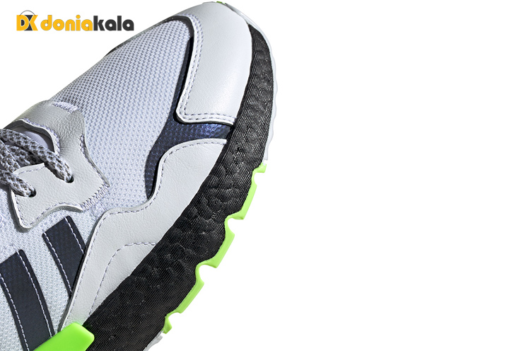 تا دیر وقت بیدار بودن. این کفش آدیداس Nite Jogger بر اساس کفش دویدن قدیمی از سال 1980 در طول شب برق می زند. برخی از درخشش های رنگی رنگین کمان را به ظاهر دونده یکپارچه اضافه می کند.کفش و کتونی مردانه آدیداس نیت جوگر دارای کفی نساجی و کوسن و قابل ارتجاع و جابجایی است. مهمترین چیز برای خرید یک کفش اصلی این است که در طولانی مدت مشکلی نداشته باشد و راحت باشد که این کفش دقیقا همان چیزی است که شما می خواهید. این کتونی واقعا برای پیاده روی های طولانی مدت بسیار مناسب است. این کتونی دارای EVA با طول کامل و دارای لایه ای از Everun در بالای استروب برای کنار کوسن و پاسخگویی پا است. کف این کتونی از جنس EVA می باشد که امکان قابل جابجایی آسان را به کفش می دهد و همچنین باعث ضعیف شدن فشار وارده از طرف زمین به کفش می شود و مانع کمر درد و پا درد می شود و دارای سیستم پاشنه گرید برای کوسن پاسخگو و بادوام و مانگاری است. مواد بیرونی این کتونی از لاستیک کربن XT-600 del است مقاومت بالایی در برابر سایش و کشش کفش دارد. بافت رویه کفش ظاهری سبک به این مدل می بخشد . رویه ی آن از چرم طبیعی جیر و پارچه ساخته شده است. پوشش داخلی از پارچه ساخته شده است. زیره راحت این مدل از پلاستیک ساخته شده است. فناوری EVA ، کفی متحرک ، Xt-600 یک مزیت بزرگ این مدل است.