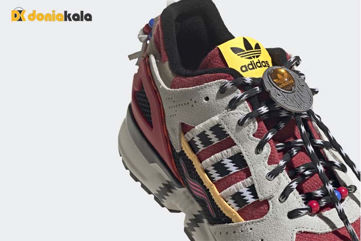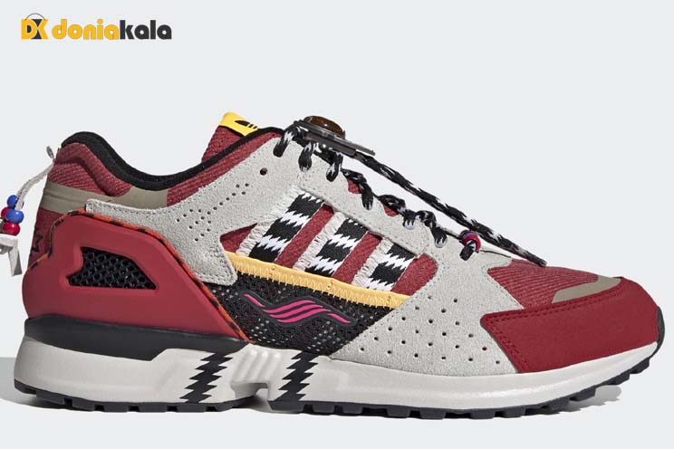 دونده های شیک با لهجه های الهام گرفته شده از فرهنگ بومی آمریکا. یک چشم به گذشته، یک چشم به آینده. این کفشهای آدیداس ZX 10000 فناوری مدرن را با الهام از فرهنگ ترکیب میکنند. سیلوئت مینیمالیستی نشانه های خود را از دوندگان دهه 80 گرفته است. جزئیات غنی و رنگارنگ از طراحی بومیان آمریکا الهام گرفته شده است. دیداس اورجینال با انتشار ZX 10000، ماه میراث بومیان آمریکا را در نوامبر جشن می گیرد. این آدیداس ZX 10000 با جناغ در قسمت بالایی همراه با جیر ساخته شده است در حالی که پلاستیک روی روکش ها اعمال می شود. علاوه بر این، ما لهجههای الهامگرفته از بومیان آمریکا را داریم که شامل مهرههای توری، آویز قفل توری، الگوهای زیگ زاگ و ضامن چرمی روی پاشنه است. پس از آن، مارک صورتی در مارک جانبی، زرد بر روی برچسب های زبان و سیستم پیچشی ظاهر را تکمیل می کند.