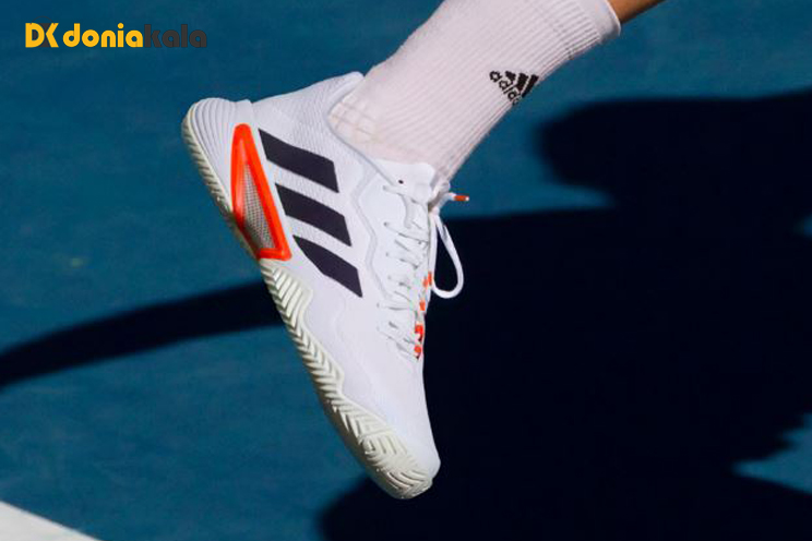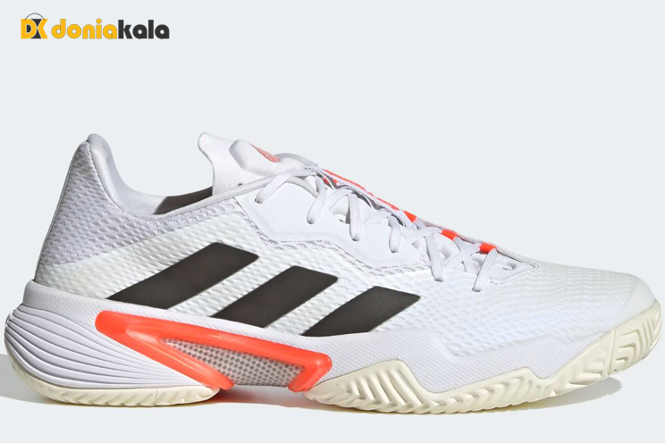 کفش تنیس | تنیس رومیزی حرفه ای آدیداس باریکاد توکیو Adidas BARRICADE TOKYO TENNIS FZ3935 بدون کنترل، هیچ تضمینی در زمین وجود ندارد، به همین دلیل است که کفش های تنیس باریکاد مردانه آدیداس برای کمک به شما برای تسلط برمی گردند. سیستم بند بصری این کفشهای تنیس آدیداس با تنظیم زبان نئوپرن با شکل پای شما، از پای شما حمایت میکند. یک سیستم Geofit در پاشنه، فضاهای باقی مانده را برای تکمیل اتصال پر می کند. زیره بالشتک میانی Bounce و قسمت میانی پا TPU هر قدم را راحت و پایدار نگه می دارد. لوگوی پررنگ آدیداس در قسمت داخلی از RPU سخت برای مبارزه با سایش و پارگی ناشی از کشش پا ساخته شده است | طراحی که با یک سیستم پهلوگیری یکپارچه، احساس پشتیبانی، پایدار و حداکثر را فراهم می کند. رویه نساجی با زبانه نئوپرن و پنجه آدیتوف. کپسول فوم در پاشنه پا. زیره جهشی با تقویت کننده میانی پا TPU. زیره Adiwear، Primegree