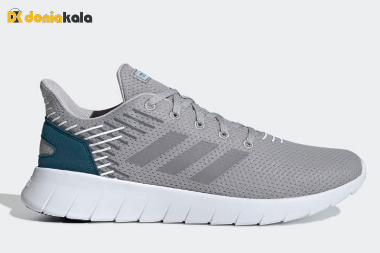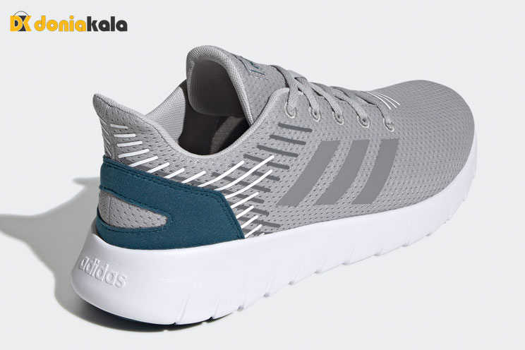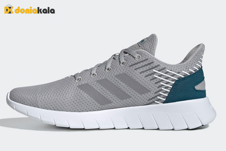 کفش و کتونی اسپرت مردانه آدیداس آسویران یک استایل تصادفی گاه به گاه که برای پوشیدن هر روز طراحی شده است. این کتونی عناصر طراحی دهه 80 را اجرا می کند و احساس مدرن می بخشد. این کفش های بافتنی با استفاده از طرح های میراثی شکل، براق و ظاهری لطیف و جوراب مانند دارند. لهجه های دوزی شده و جزئیات جوش داده شده، ظاهری فراتر از اساسی را بالا می برد. ساخته شده برای سهولت در تمام طول روز با روکش کشباف کشش و یک میانه سنگین وزن می باشد. کوسن سبک وزن راحتی همه روزه را فراهم می کند. زیره ی این کتونی از جنس EVA می باشد و مانع از وارد شدن فشارهای وارده زمین به پا می شود و روکش بیرونی و زیر EVA لاستیکی است و روکش بالایی آن از پارچه ی کششی مش می باشد. موجود در کفش سفید ، هسته سیاه و خاکستری است و ساخت و ساز این کتونی مانند جوراب پا را در آغوش می گیرد.