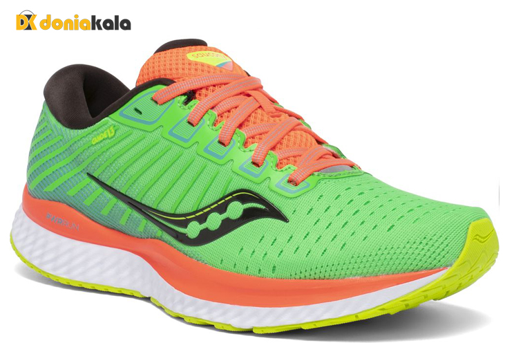 کتانی زنانه اسپرت ساکونی به شیوه ای طراحی شده است که در نورپردازی کم بهتر دیده خواهد شود و بازتاب خوبی از نور دارد. زبانه ی آن از جنس مخمل می باشد و جنس رویه ی آن از پارچه مش می باشد و قابل تنفس برای پا در هوای گرم می باشد و در هوای گرم حسی خوبی بهت دست خواهد داد. کف این کتونی از جنس EVA می باشد که امکان قابل جابجایی آسان را به کفش می دهد و همچنین باعث ضعیف شدن فشار وارده از طرف زمین به کفش می شود و دارای سیستم پاشنه گرید برای کوسن پاسخگو و بادوام و مانگاری است. مواد بیرونی این کتونی از لاستیک کربن XT-600 del است مقام بالایی در برابر سایش و کشش کفش دارد.Saucony Guide 14 برای مردان کفش دویدن تمام عیار برای استفاده بیش از حد است. Guide یک مدل Saucony شناخته شده است و یک کفش مخصوص دویدن است که برای دویدن های روزانه شما ایده آل است. راهنما همچنین هنگام دویدن در مسافت های طولانی برای شما موجود است. قسمت فوقانی تازه شده ظاهری شیک و سریع را ایجاد می کند. مواد مش به راحتی در اطراف پا قرار می گیرد بدون اینکه خیلی سفت و سخت شود. فناوری FORMFIT خود را متناسب با پاهای شما برای تناسب شخصی سازی می کند. زبان و یقه طراحی سنتی کاملاً از بالشتک برخوردار است که احساس نرم و راحتی را تضمین می کند. Fascia قالب 3D در قسمت فوقانی ثبات بیشتری را ایجاد می کند.میانی PWRRUN بالشتک سازی م effectiveثر را تضمین می کند و فشار را بر روی پاها تقسیم می کند. این ماده تعادل عالی بین بالشتک سازی ، محافظت و احساس پاسخگویی را تضمین می کند. فریم راهنمای TPU پشتیبانی در هنگام استفاده بیش از حد را فراهم می کند. با افزودن قاب با تراکم بالاتر ، کفش ها می دانند که هنگام دویدن از مچ پا به داخل فرو نمی رود. زیره لاستیکی و EVE چسبندگی خوبی را ایجاد می کند. زیره نیز به لطف مواد به کار رفته در ساخت آن بسیار مقاوم است.