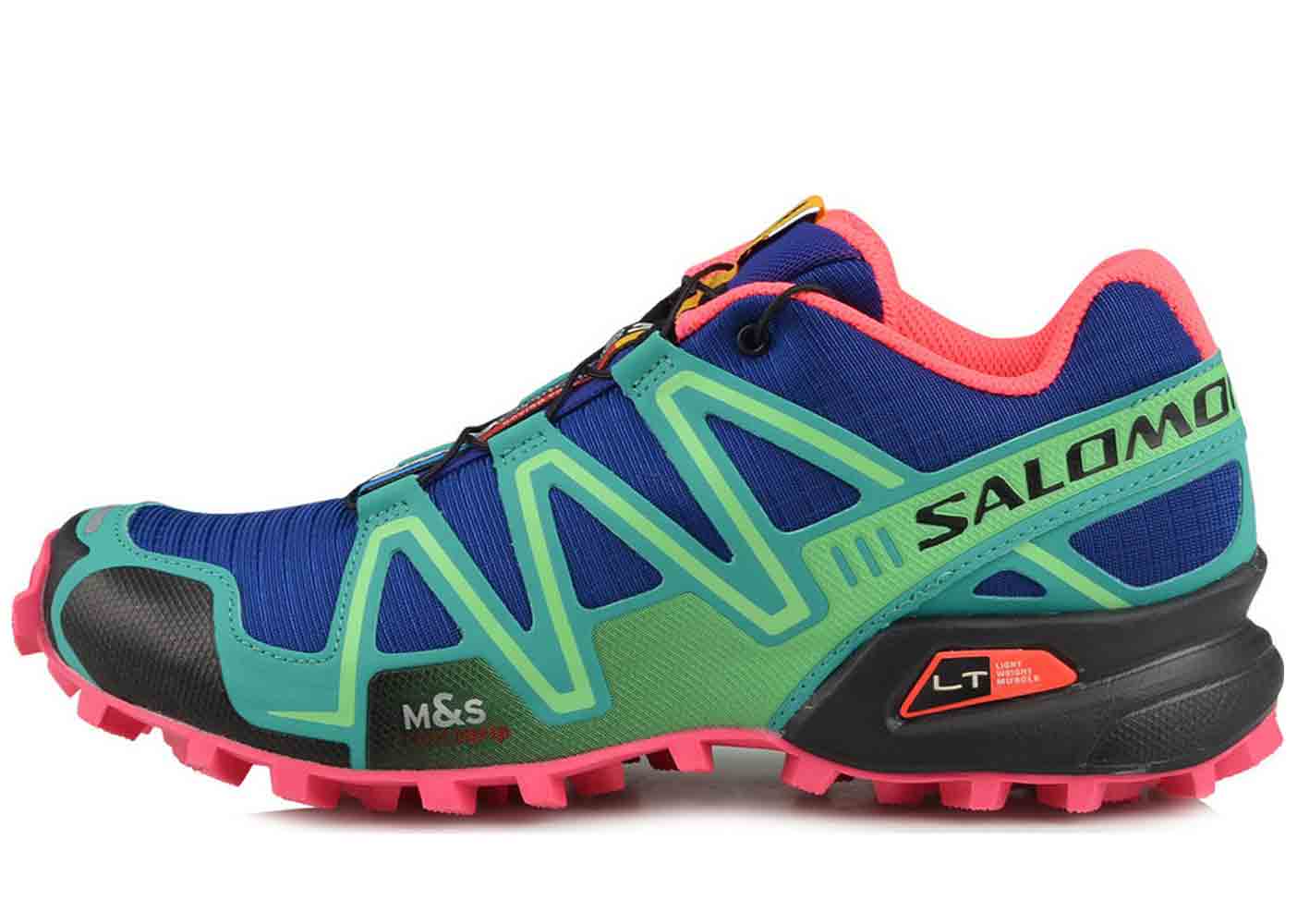 کفش اسپرت و پیاده روی زنانه سالامون اسپید کروس تریل رانینگ trail running با طراحی زیبا و شیک مخصوص خانم هایی که مدام در حال پیاده روی و ورزش های هوازی بسیار مناسب است. جنس رویه این کتونی از چند لایه چرم و ایلاف مصنوعی به همراه پارچه مش تولید شده است و دارای منفظه هایی برای ورد هوا و جلوگیری از عرق کردن پا می باشد. همچنین دارای روکش محافظ انگشتان است که این روکش سبب محافظت بیشتر انگشتان از آسیب های احتمالی هنگام کوهنوردی مانند سقوط سنگ روی پا خواهد شد. کفی آن اورتولایت Ortholite است که ضد باکتری و تعریق، دفع رطوبت و بوی بد پا، کمک به تنفس بهتر پا درون کفش، محیطی سالم و راحت را فراهم میکند و در طی زمان از بین نخواهد رفت. كفي طبي Ortholite ( اورتولایت ) گودي پا را پر میکند و از الياف نقره ساخته شده است. دارای تکنولوژی ایندوفیت EndoFit است، به موجب این تکنولوژی کفش، پا را مانند گهوارهای در بر میگیرد که علاوه بر کاهش وزن رویه، منجر به آزادی عمل بیشتر و دقیق تر پا می گردد. زیره لاستیکی بسیار مقاوم کنتاگریپ Contagrip دارای گریپ های لاستیکی که حرکت بر روی برف و یخ را راحت تر میکند.