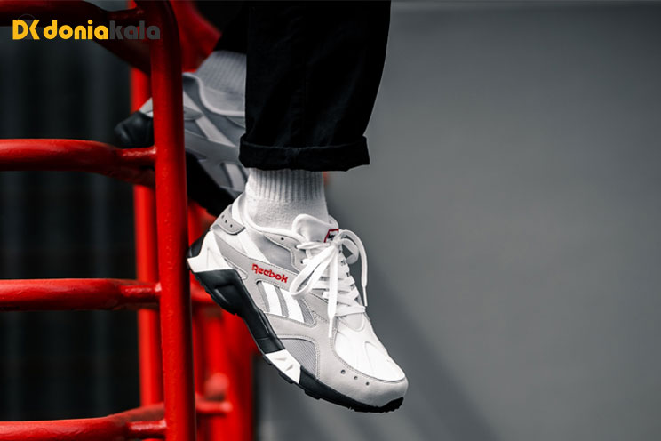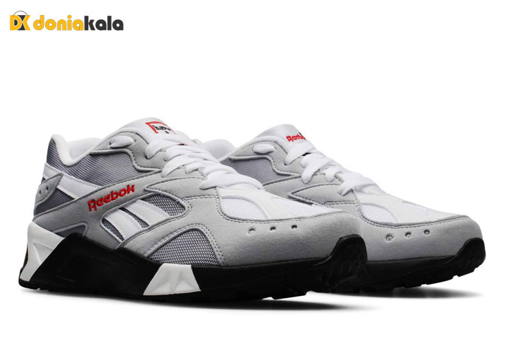 کتونی اسپرت پیاده روی زنانه ریباک آزترک رانینگ مدلی برای هر دو دسته ی آقایان و خانم ها مناسب پیاده رویی های روزمره می باشد که طرفداران زیادی دارد. رویه این کتونی از چرم جیر ساخته شده و ترکیبی از رنگ های سفید و خاکستری می باشد که توسط آرم های قرمز روی رویه ی ان برجسته شده است. وسط میانی سیاه و سفید به طور موثری مخلوط می شود و باعث ظرافت بیشتر ظاهر می شود. مارک تجاری هر کفش نیز متفاوت تفسیر می شود و کفش مناسب دارای نشان امضای HAGT بر روی زبان و آرم Reebok در قسمت میانی است. زیره ای این کتونی از جنس EVA و پلاستیک می باشد که بسیار انعطاف پذیر است و از فشار های وارده زمین به پا می کاهد.